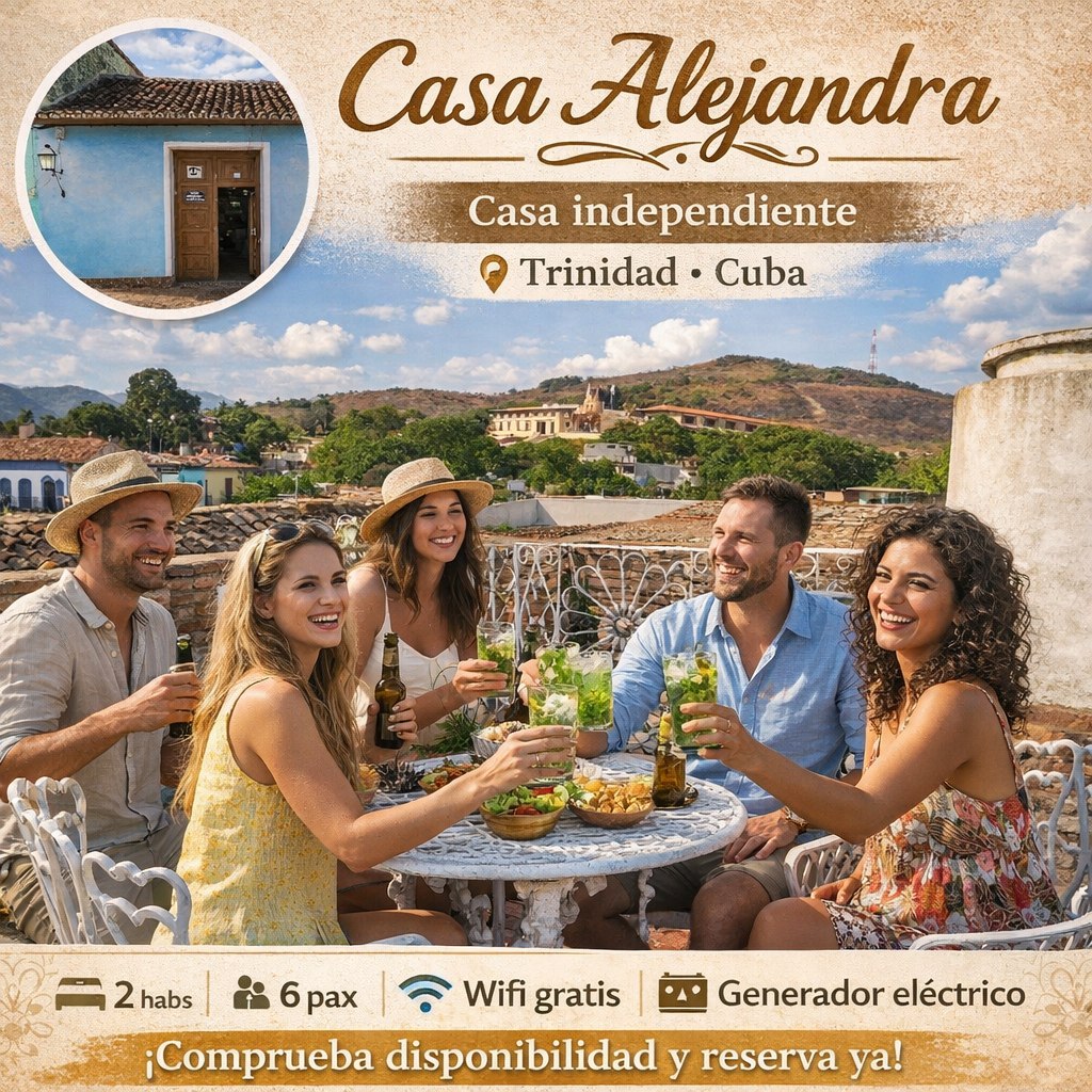 La Casa Alejandra, ubicada a escasos metros del casco histórico de Trinidad, te ofrece la oportunidad perfecta para admirar lo real maravilloso de una villa colonial cubana. Solo tocar su puerta te inspira respeto y cierta incertidumbre. Sin embargo, todo queda atrás cuando vez a Lázara con una sonrisa dibujada en su rostro. Luego del saludo, la confianza y el confort se tornan protagónicos, el cansancio del viaje desaparece y ya estás nuevamente como en casa.