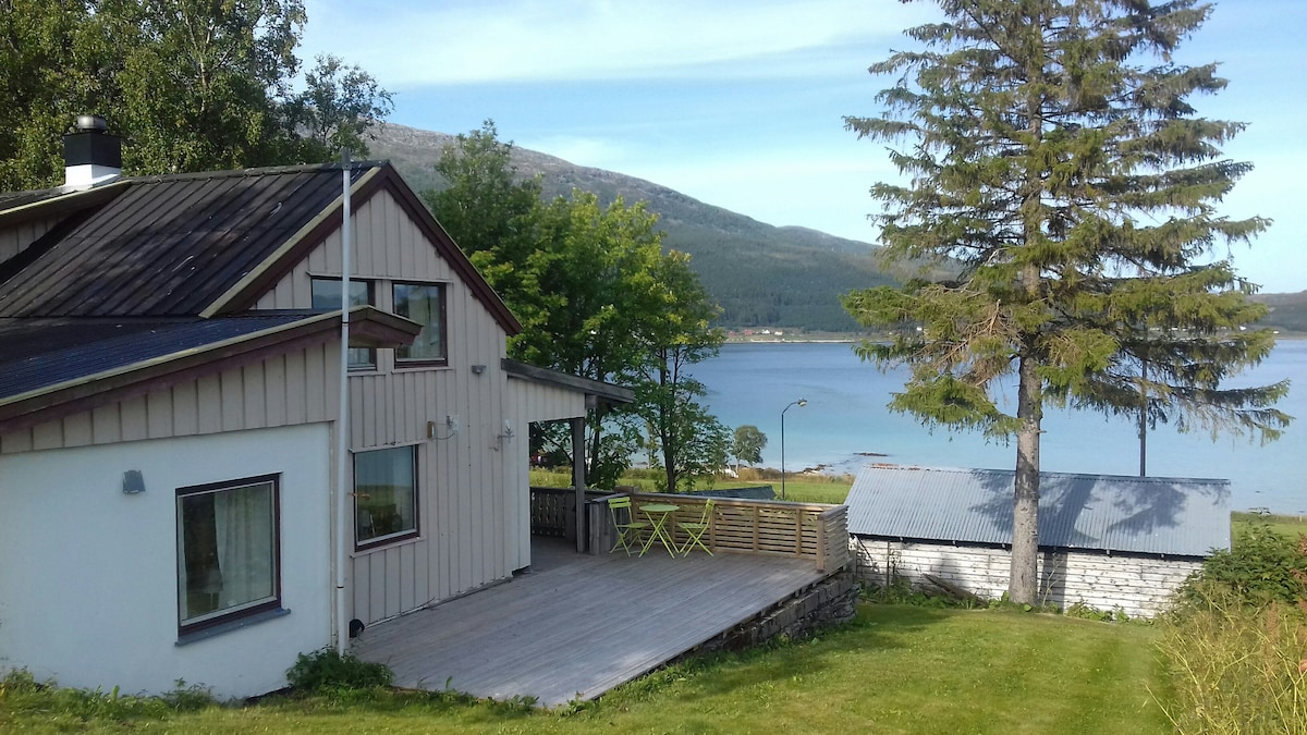 Maravilloso lugar con proximidad al lago y a las montañas. Bonito lugar para familias. La zona tiene unas vistas impresionantes de los Alpes Lyngen, con oportunidades para ver la aurora boreal en invierno y el sol de medianoche en verano. Hay buenas posibilidades de senderismo cerca. Desde la propiedad se puede subir directamente a la montaña Storhaugen. Sorbmegáisá también está cerca. A poca distancia de otras montañas populares. Sauna de leña y cabaña de barbacoa. Se proporciona ropa de cama. Camas adicionales, cama de viaje para niños, trona. Se admiten mascotas. Raquetas de nieve y bicicletas disponibles.