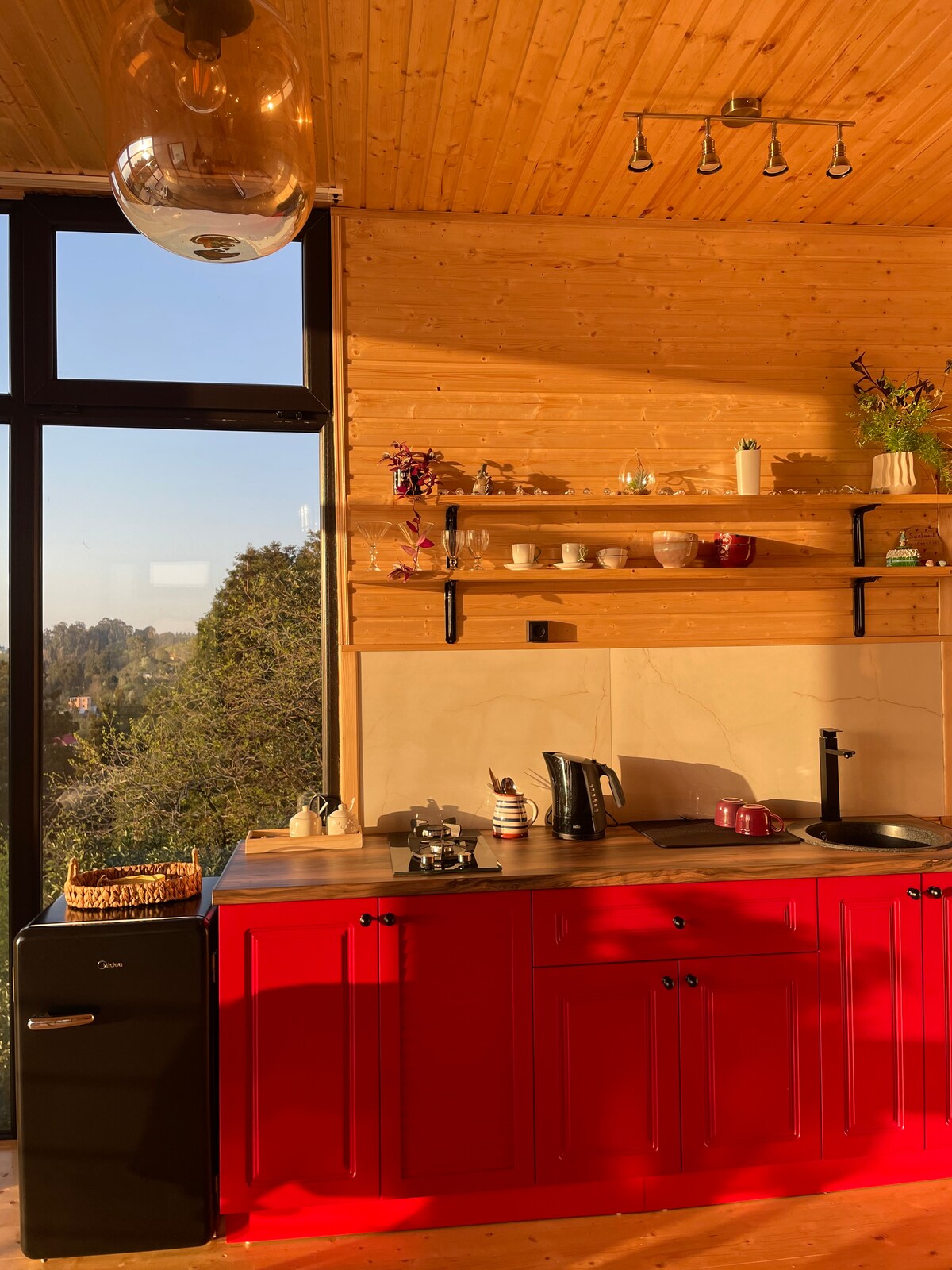 Welcome to our cabin Greenland Pheria, where rural atmosphere meets comfort in the vibrant heart of nature. This bright and stylish cabin offers stunning sea and mountain views from your private balcony and bay windows, just a stone's throw away from city of Batumi. Enjoy the convenience of complimentary air conditioning and Home Theater Projector among other modern amenities.