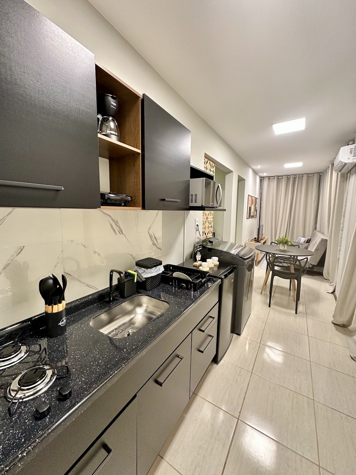 Refugio890: loft privado y totalmente equipado en Tubarão SC, ubicado en un barrio tranquilo y céntrico, a pocos minutos del centro de la ciudad, Farol Shopping y Unisul. Ideal para parejas, familias o profesionales que viajan, estudiantes o aquellos que vienen a Tubarão por trabajo o salud. El lugar ofrece: • Aire acondicionado • Wifi rápido • Cama cómoda • Cocina equipada. • Lavadora - Ropa de cama completa. • Secador de pelo. • Espacio de oficina en casa • Acceso totalmente privado