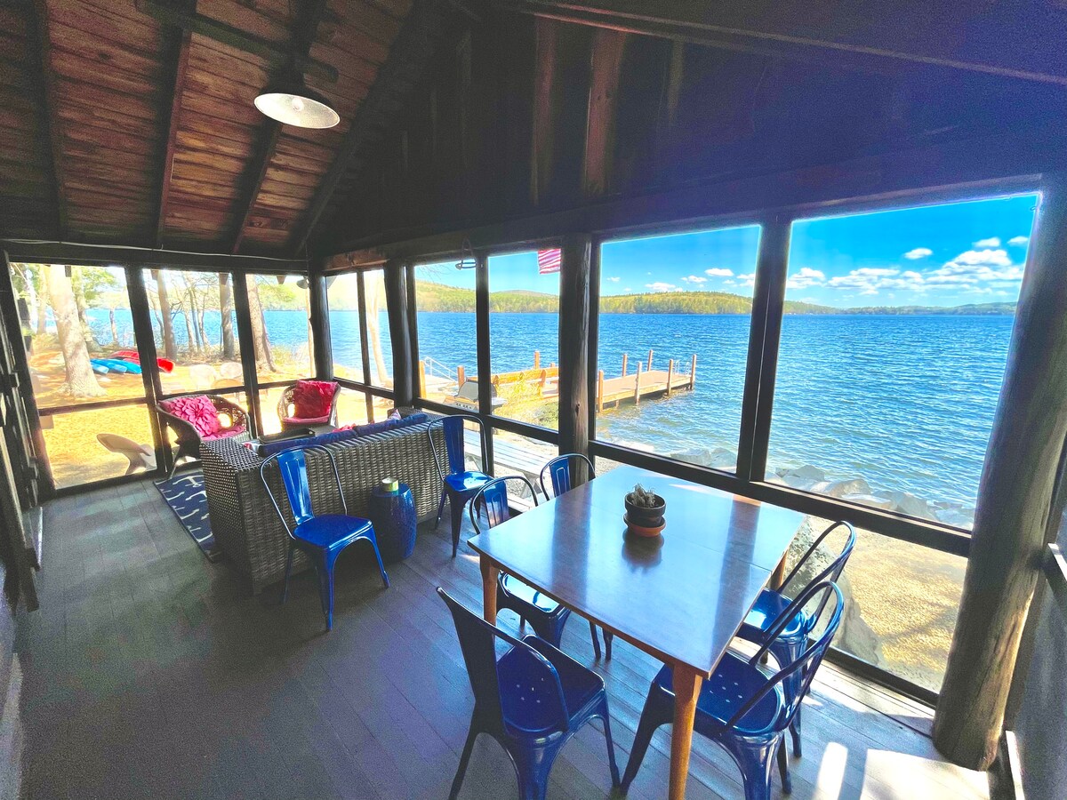 Te damos la bienvenida a esta cabaña limpia, luminosa y espaciosa con ventanas del suelo al techo y unas vistas impresionantes de Sargent 's Pond en todas las estaciones. En 62 acres y con solo doce casas, Sargent 's Pond es el lugar perfecto para actividades más sencillas, paz y tranquilidad. Disfruta de dos cómodos dormitorios dobles, un sofá cama en la sala de estar, un baño con bañera, lavadora y secadora, una cocina totalmente equipada con lavavajillas, wifi, sistema estéreo bluetooth (¡trae tu vinilo!) y Smart TV. Disfruta comiendo y relajándote en la espaciosa terraza con impresionantes vistas al agua, y para los más pequeños, columpiándose y deslizándose en el columpio. Sobre el garaje hay una sala de recreación con una mesa de ping pong, así como una sala de juegos para niños llena de juguetes, juegos de mesa, rompecabezas y libros. Disfruta del televisor/reproductor de DVD con una gran variedad de películas favoritas para niños. ¡Perfecto para días lluviosos o tiempo de inactividad, este espacio adicional seguramente complacerá a niños y adultos por igual! Ten en cuenta que un paquete y juego, un colchón para niños pequeños y una trona para niños pequeños están disponibles bajo petición.