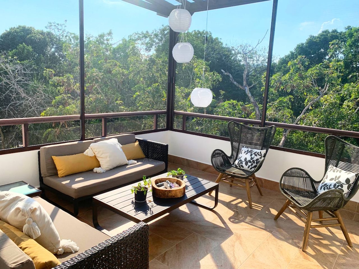 - ¡Apartamento inspirado en la naturaleza en un tranquilo desarrollo selvático con un ambiente místico! - Entorno encantador con salas de estar, piscinas y dos cenotes únicos. - Servicios: coworking, gimnasio, loft de yoga en el lugar y a solo 8 minutos en coche de la ciudad - Balcón privado, exuberantes vistas y azotea privada con comedor, piscina profunda y parrilla. - FiberOptic Wi-Fi, zona de trabajo para computadoras portátiles, lavadora, secadora y aparcamiento gratuito.