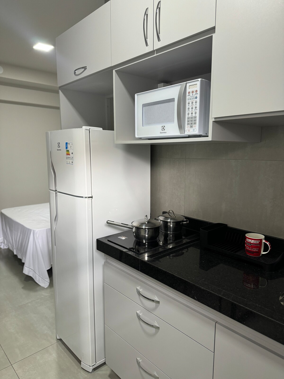 Nuevo alojamiento en el centro de la ciudad de Votuporanga, cerca de la facultad Unifev, cine, farmacias y restaurantes. Con total seguridad y comodidad para ti y tu familia. Nuestro apartamento cuenta con: ▫Aire acondicionado 18 mil BTUS ▫Smart TV ▫Internet ▫Cocina de inducción ▫Heladera Dúplex ▫Microondas ▫Mesa y sillas ▫Cama doble ▫Armarios empotrados ▫Mesitas de noche ▫Ducha eléctrica ▫Plancha