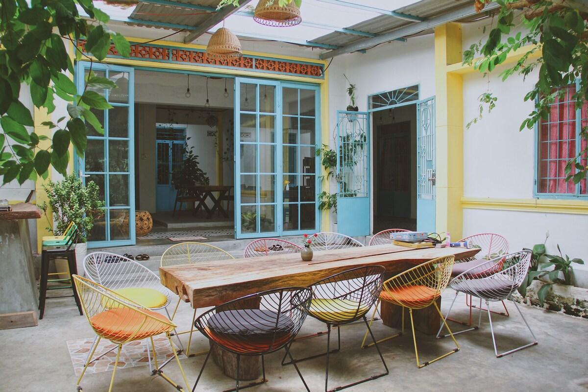 Somos una casa de familia tranquila en el suburbio de la ciudad de Tuy Hoa. Tenemos dormitorios vintage que consolarán tu estadía. Todas las mañanas puedes levantarte, salir de tu habitación y sentarte en nuestro jardín para disfrutar de la música relajante mientras bebes tu café.