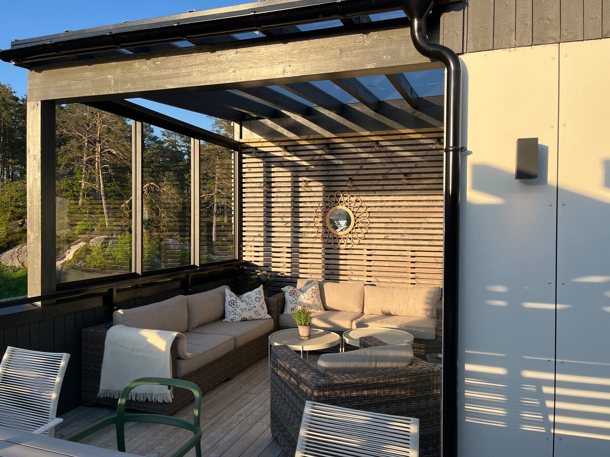 ¡Gran y muy espaciosa casa de vacaciones (323 metros cuadrados) con vistas panorámicas de la presentación de la presentación a Risør! Situado cerca del centro de la ciudad y del mar, así como a muy poca distancia de un gran terreno de senderismo en Urheia. La casa tiene todas las comodidades, como jardín con cama elástica, bañera, máquina de cubitos de hielo, cafetera, dos patios estofados con vistas y cargador para coche eléctrico. La casa es adecuada para 2 o más familias:-)
