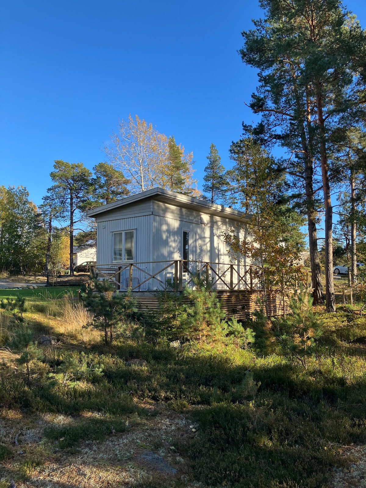 A simple yet cozy guest house, privately located on the same property as the main residence but fully detached and without direct overlooking. The house sits on a height, right next to a typical Swedish archipelago forest consisting of pine and birch, offering a peaceful and natural setting. Close to the sea, nearby nature reserves, and public transport to Sthlm C (about 30 minutes). The house includes a separate bedroom (140cm bed), a living room with a small kitchenette, and a bathroom.