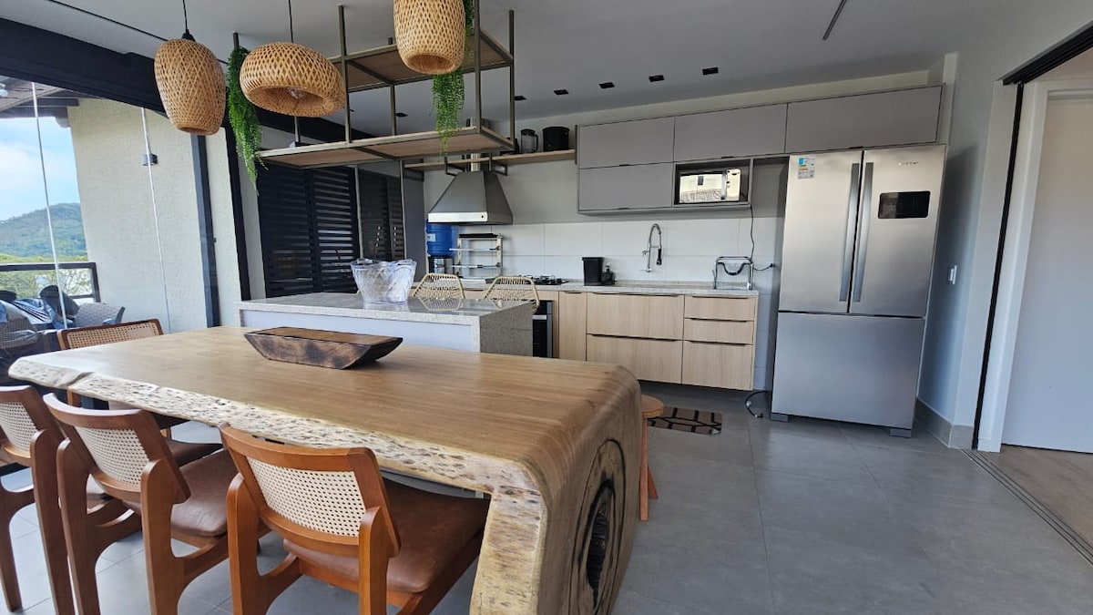 Casa de Ubatuba em um bairro residencial, no meio da Mata Atlantica. Casa de 4 quartos, sendo 1 suite, 3 banheiros, salas amplas, com area construida de 240 m². Jardim de 550 m² com churrasqueira, Jacuzzi, estacionamento com cobertura. Bairro com portaria, Localizacao central, mas fora da grande movimentacao de Ubatuba. Supermercado perto, 1.500 m. Casa ideal para familias com criancas que busca sintonia com a natureza e desfrutam conforto e espaco com Vista para mata Atlantica e Serra do Mar.