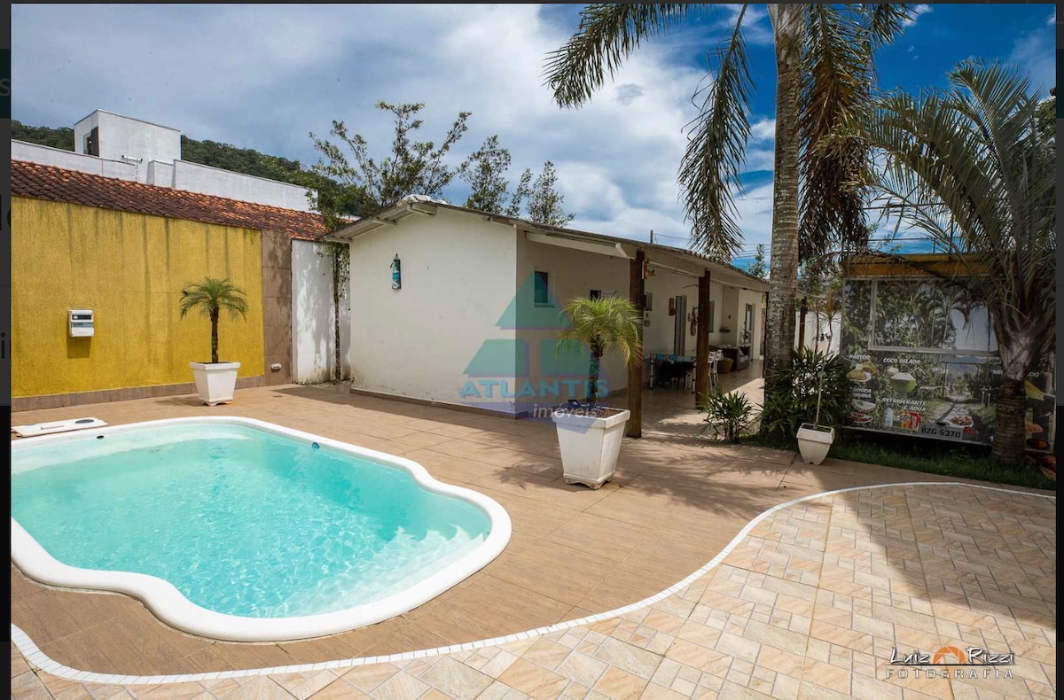 Relaxe e aproveite com sua família nesta casa charmosa,a poucos passos da praia! Acomodações Confortáveis •Até 6 pessoas •3 quartos (1 suíte)e 3º quarto/sala,todos c/ar cond. e passagem. •Camas: 1 Queen,1 King,2 solt. ,1 sofá retrátil gd,2 colchoes solt. e 1 colchão casal Conforto e Lazer •Sala ampla c/ sofá retrátil,cama/box e ar •Cozinha completa (geladeira,liquidificador,cafeteira,pipoqueira, coqueteleira,diversas travessas! •Piscina Privativa e churrasqueira c/ fogão 5 bocas.