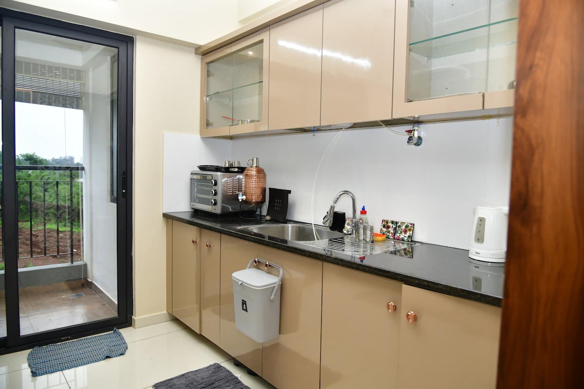 Apartamento amueblado 3BHK. Habitaciones con aire acondicionado y una vista serena. Tiene capacidad para grupos grandes y familias que quieren alojarse juntos y aún así tener su privacidad. Alojamiento máximo: 10 Alojamiento recomendado: 6 Playa Panambur -15 minutos Estación de tren y aeropuerto a 18 minutos. Cosas proporcionadas: nevera AC Lavadora TV Microondas Sábanas y mantas tostadoras. Lavado a mano * Nota* Lleva tus propias toallas y artículos de tocador. Estaciona en el lugar asignado Toma el coche en reversa desde la puerta