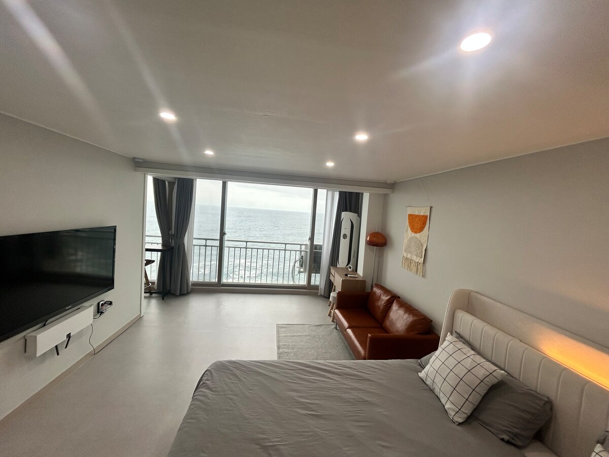 안녕하세요^^ 현지 거주하며 숙소를 관리하는 트루스테이입니다. 입구에 들어서면 거실창으로 아름다운 바다가 환영해줄것입니다 . 12시퇴실로 여유로운 오전시간을 보내세요 객실유형 - 1.5룸 (침대룸+거실, 주방+화장실) 고층오션뷰 10층에서 최고의 오션뷰를 감상할수 있고 거실TV는 넷플릭스와 유투브 등 OTT영상을 즐기실수 있습니다. 블루투스 스피커로 취향껏 공간을 채워보세요 KTX묵호역/동해역과 시외버스터미널에서 택시로5분 거리이며 숙소에서 도보3분이내 한섬해수욕장, 해변산책로가 있습니다. 도보 5분이내 맛집식당가, 건물내 1층 이마트24편의점,이마트,식자재마트,다이소,롯데시네마등 시내중심가로 이동이 용이합니다. 루프탑 전망대, 피트니스센터외 운동시설 코인 세탁실등 건물 내의 편의시설 이용가능합니다. (일부유료) - 기타 - 1. 체크인 당일 안내메세지(현관 디지털 도어록 비밀번호, 호수 및 안내사항)를 보내드립니다. 2. 숙소 주소 : 강원도 동해시 한섬로 136-4