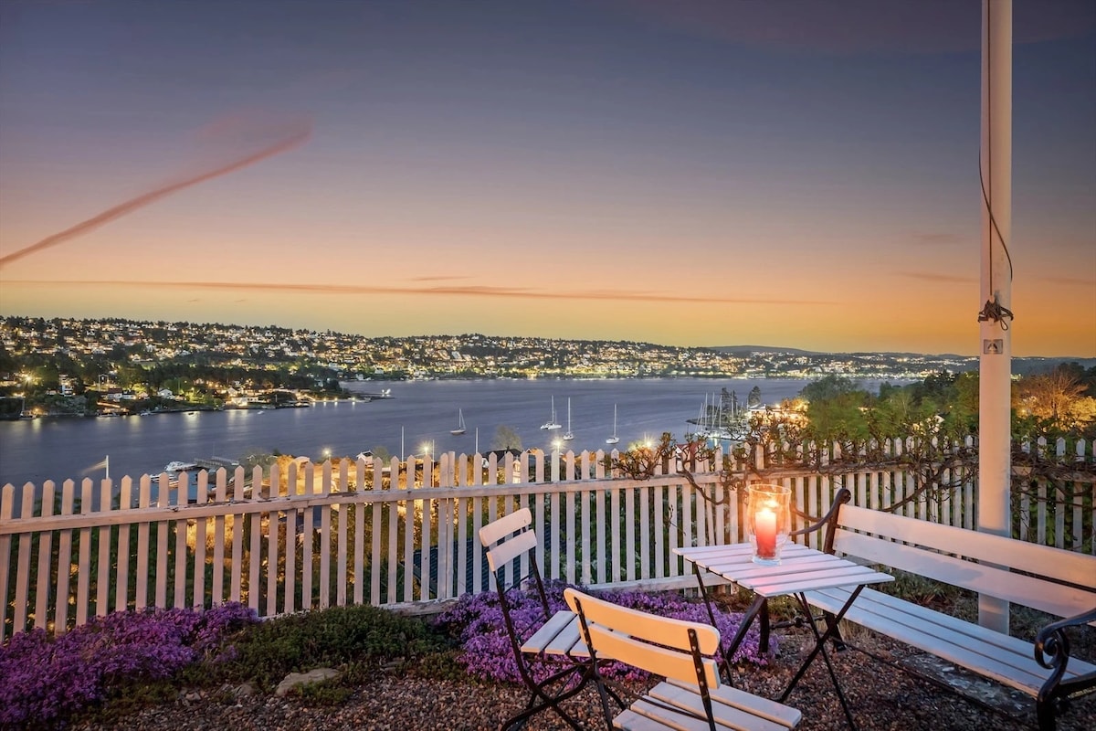 Apartamento tipo estudio en un anexo separado de la casa principal. Grandes vistas del fiordo hacia Oslo. Habitación principal con cama de matrimonio, sillón cómodo y zona de cocina equipada con mesa de comedor. Baño con ducha. Wifi. A cinco minutos a pie de lugares de natación cercanos. A cinco minutos a pie del autobús y a 45 minutos en coche del centro de Oslo (Aker brygge).