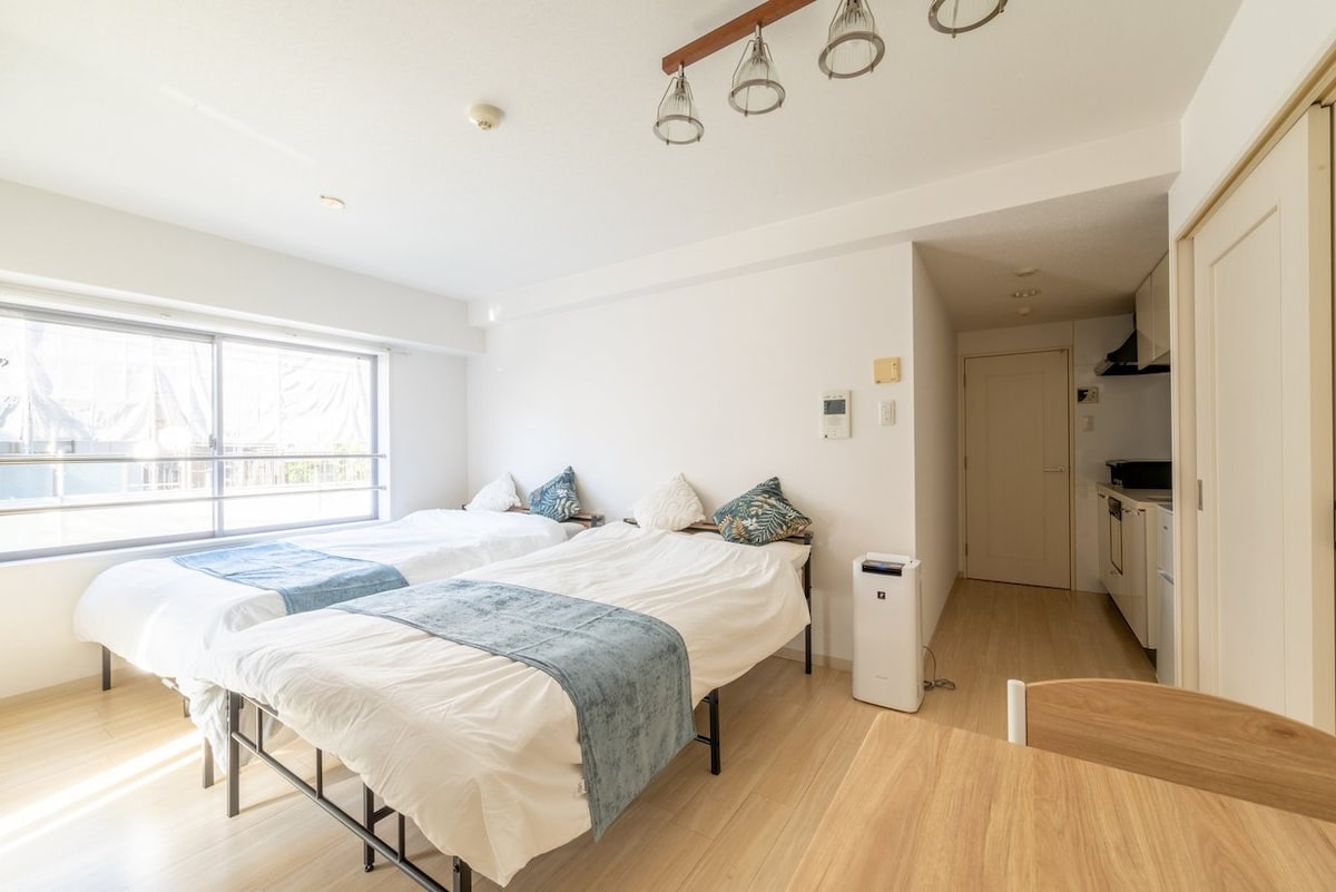 ¡Perfecto para una cita! ★¡Abierto recientemente en febrero de 2022! ★dos camas individuales de 0,9 m x 2 m A ★5 minutos a pie de la estación de Nihonbashi A ★6 minutos caminando desde Dotonbori Wifi ★de alta velocidad incluido. ★Solo utilizamos productos de los principales fabricantes japoneses para todos los electrodomésticos. ★Lavadora secadora disponible ★Puedes ver videos de Internet como Netflix y Hulu, así como programas de televisión terrestre en tu televisor 4K. *Los servicios de video en línea solo pueden ser vistos por quienes tienen una cuenta.