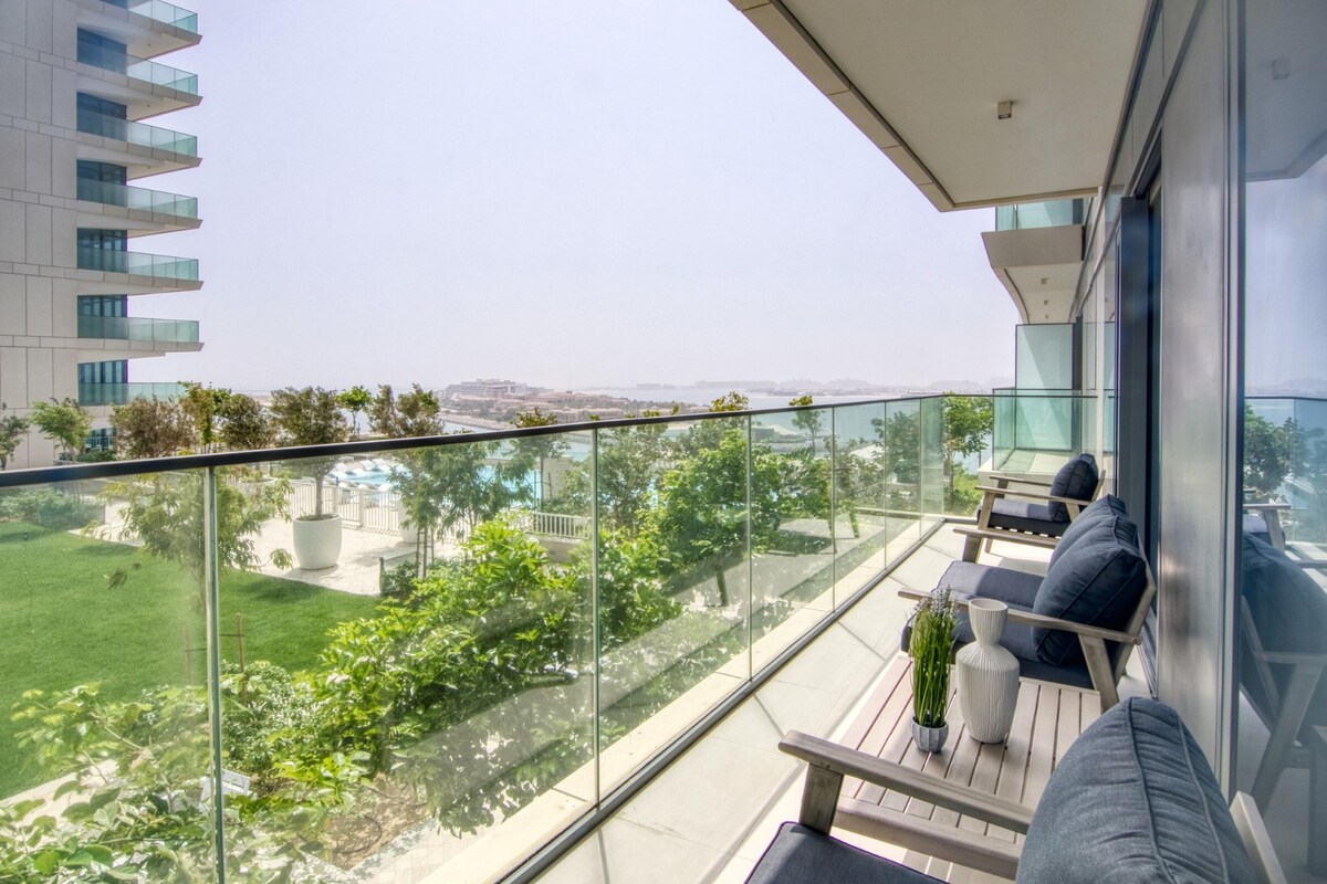 This beautiful fully-equipped 1-bedroom apartment is located on The Palm Jumeirah, Dubai's very popular landmark, and has a view on the garden. Available to you are on-premise BEACH and POOL and fully equipped apartment with stocked kitchen with everything needed to live. Please note that the view can be obstructed by some construction. Neighboring our residency is a famous 5-star hotel Zabeel Saray with great restaurants, bars, and cafés, where you have a 20% DISCOUNT on food and drinks!