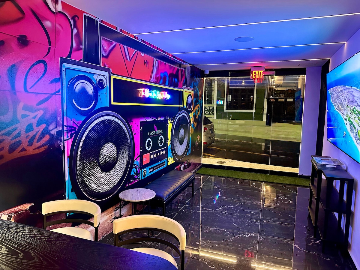Casa Musa Boutique Hotel is more than a stay; it’s a cultural experience. Welcome to Casa Musa, the first and only boutique hotel in Puerto Rico dedicated to celebrating our rich musical heritage. Each Master Suite honors a legendary genre through design and rhythm that tells our story and reveals our soul. Feel like a star when you enter your suite, which features an adjustable plush queen-size bed, kitchen, stylish living room, and private bathroom, the perfect blend of comfort and style.