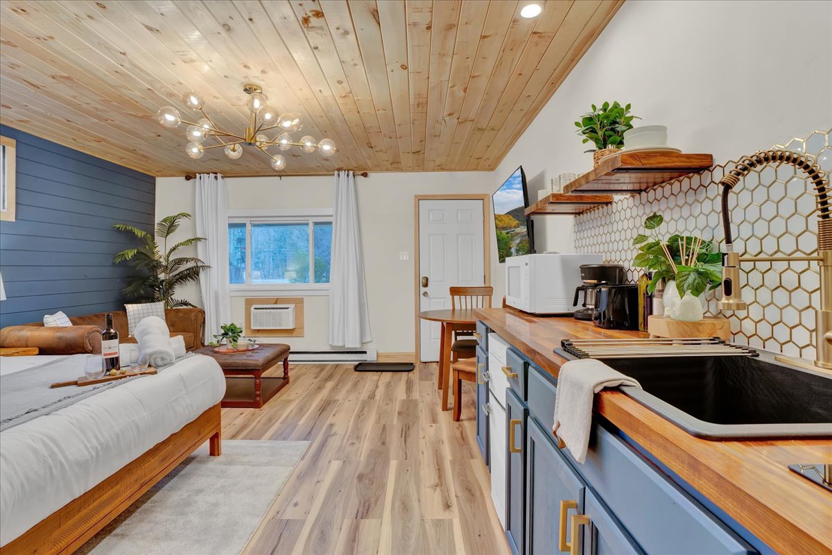 Bright, modern, and just steps from the heart of Wimberley, Studio 3 offers a Hill Country escape with everything within walking distance. Ideal for couples, a friends’ getaway, or a peaceful work-from-anywhere stay, this studio blends comfort, style, and convenience. Enjoy a luxury king bed, spa-style bathroom with soaking tub and rainfall shower, plus a kitchenette and dedicated workspace. Two convertible chairs provide flexible sleeping space for a third guest (great for a small child).