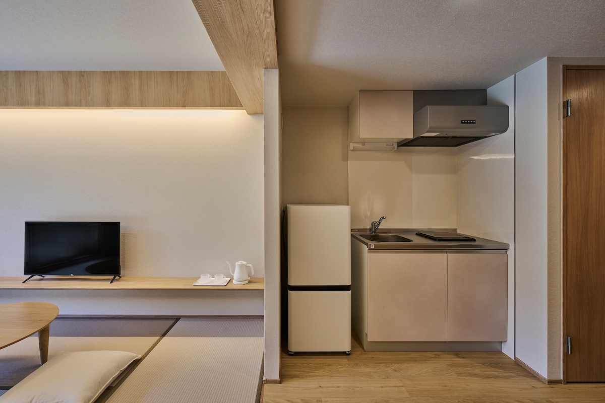 A solo una parada de las prisas de la ciudad, pero alejado silenciosamente de su ruido: Reikyo presenta una sala de tatami serena diseñada para el descanso, la reflexión y la belleza tranquila. Frente a un pequeño jardín privado, este espacio combina el estilo tradicional japonés con la comodidad moderna. El jardín del patio está iluminado suavemente por la noche, creando un ambiente meditativo que cambia con la hora. La iluminación al estilo de lavado, las texturas de madera natural y el suave aroma del tatami crean un refugio tranquilo en el corazón de la ciudad.