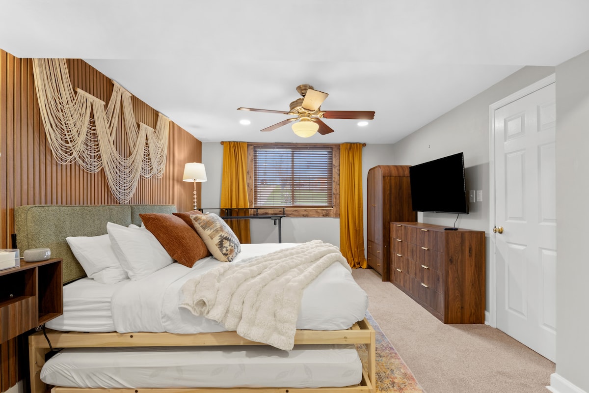Experimenta el lujo y el estilo en nuestra casa de St. Louis. Esta residencia ofrece 2 dormitorios modernos en el piso de arriba, mientras que el nivel principal cuenta con un acogedor salón, una cocina totalmente equipada, un baño elegante, una hermosa litera y una moderna configuración de trabajo desde casa con wifi de alta velocidad, que combina elegancia y comodidad. Ubicado en una comunidad segura cerca de Delmar Loop, es el lugar ideal para eventos locales. Con servicios de primer nivel, ropa de cama lujosa y un amplio estacionamiento, te prometemos una estadía impecable en St. Louis.