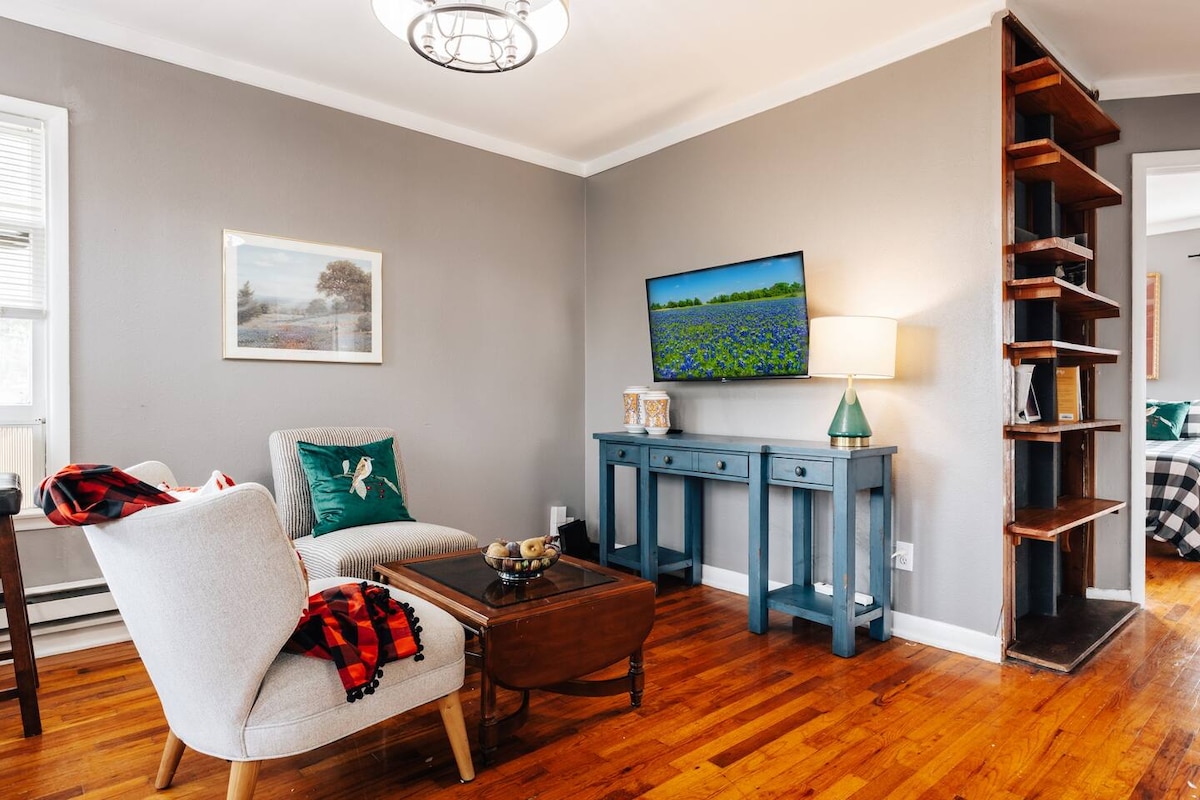 Esta pequeña casa fue diseñada con cariño por una artista durante la cuarentena, ¡y ahora puedes entrar en su mundo! Disfruta de los fotolibros, sumérgete en la bañera extraprofunda o mira por la ventana del loft. Este es un oasis tranquilo y rural situado en el barrio de Hyde Park, a cinco minutos a pie de Shipe Park y piscina, Quack's Bakery, Julio's Tex Max, Hyde Park Grill, Juiceland y Antonelli's Cheese Shop. Si te gustan los espacios altamente organizados y las escaleras de biblioteca, ¡has encontrado el lugar correcto!