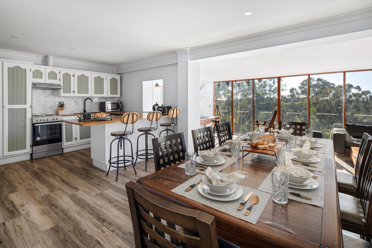 Tómame de la mano y déjame guiarte al agua a través del bosque... Water & Woods es una acogedora cabaña independiente, ubicada bajo un dosel de árboles y a pocos pasos de las rutas de senderismo de Purling Brook Falls. Esta es tu oportunidad de relajarte... o estar activo, rodeado de una parte muy especial de la selva tropical de Gondwana, a menos de 50 minutos del bullicio de las luces brillantes de la Costa Dorada. Sí, eso es lo que ves desde la barra de desayuno.