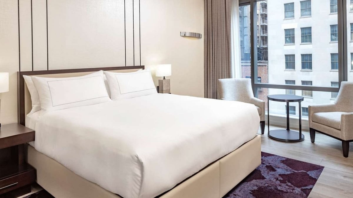 Mint House 70 Pine by Kasa blends style and function in Manhattan’s Financial District. Choose from hotel rooms and suites with kitchenettes or full kitchens, with access to amenities including the fitness center and meeting spaces, and on-site Michelin-starred dining at Crown Shy and SAGA. Our tech-enabled rooms and suites offer self check-in at 4pm. We provide 24/7 on-site Front Desk services, including guest support by text.