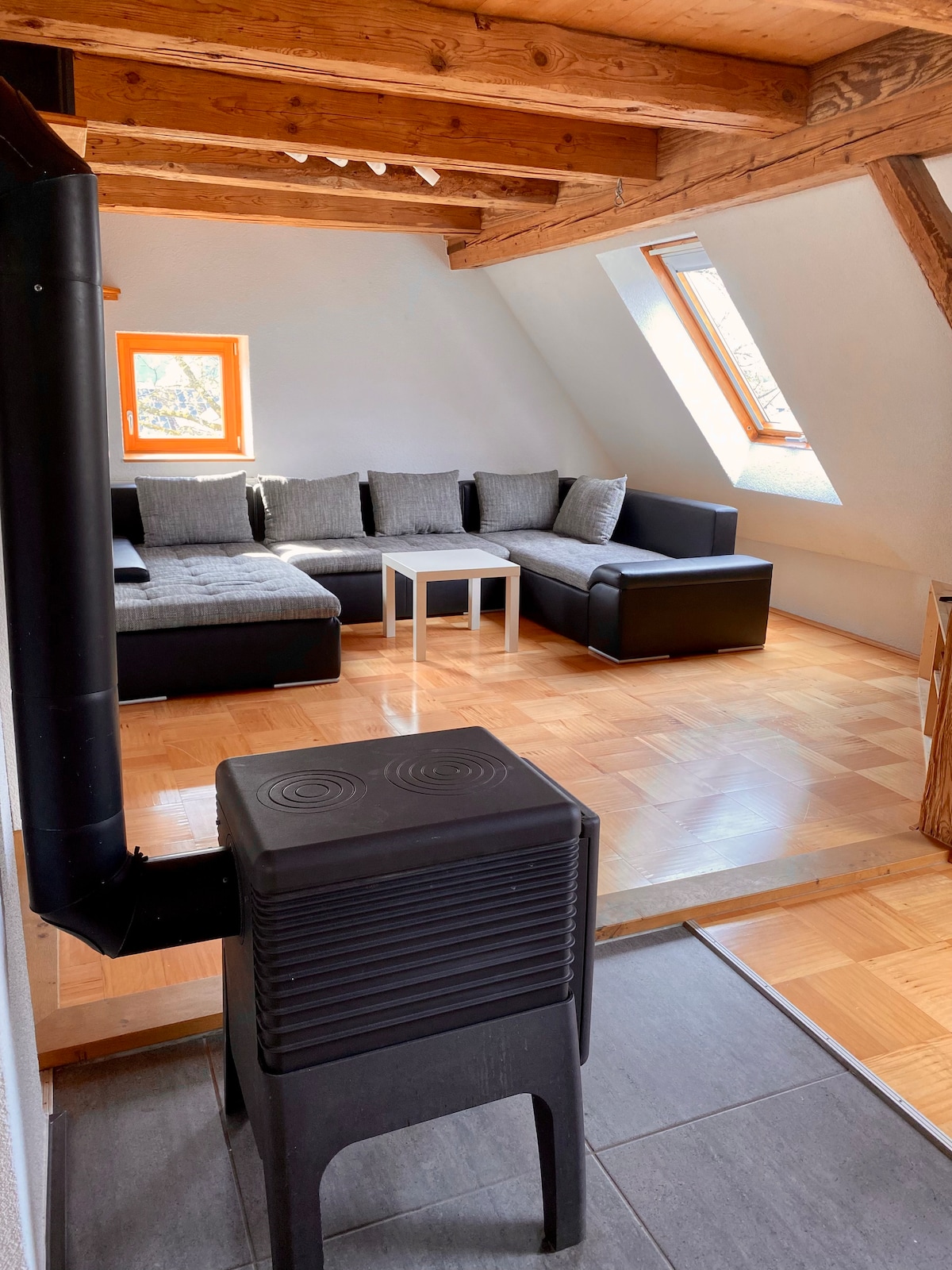 Por favor, INFORMACIÓN IMPORTANTE SOBRE LA COCINA (lea más abajo: ¡más información relevante!) Nuestra habitación de huéspedes se encuentra en el segundo piso de nuestra casa de campo al final de un callejón sin salida. Después de una excursión por el Jura de Suabia, podrán relajarse y disfrutar del panorama del Jura desde el balcón. Nuestra habitación puede ser utilizada por dos adultos y hasta dos niños pequeños (hasta 12 años). A petición, proporcionamos una cama plegable y una cuna de forma gratuita.