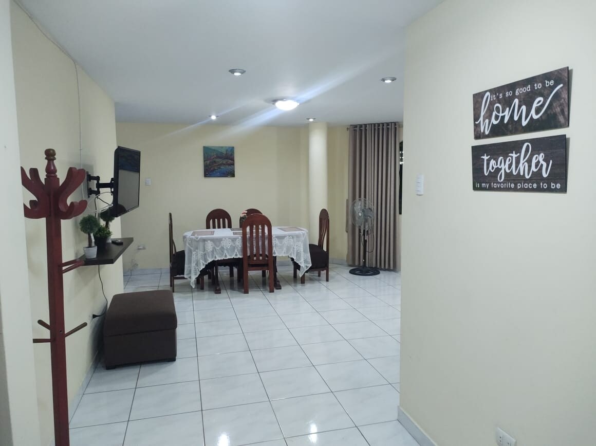 bienvenido a un ambiente acogedor Disfruta de un lugar entero para ti y tu familia tranquilo y comodo Un apartamento completamente equipado, con Internet óptico de alta velocidad disfruta de tus peliculas favoritas en un TV Smart de 55" netflix ,Amazon Prime. a 20 minut. del aeropuerto, 25 minutos del centro de lima Cerca a avenidas principales a (50 metros) , a 10 minutos de centros comerciales como Megaplaza, plazanorte ,terminal de autobuses de donde salen a diferentes partes del pais.