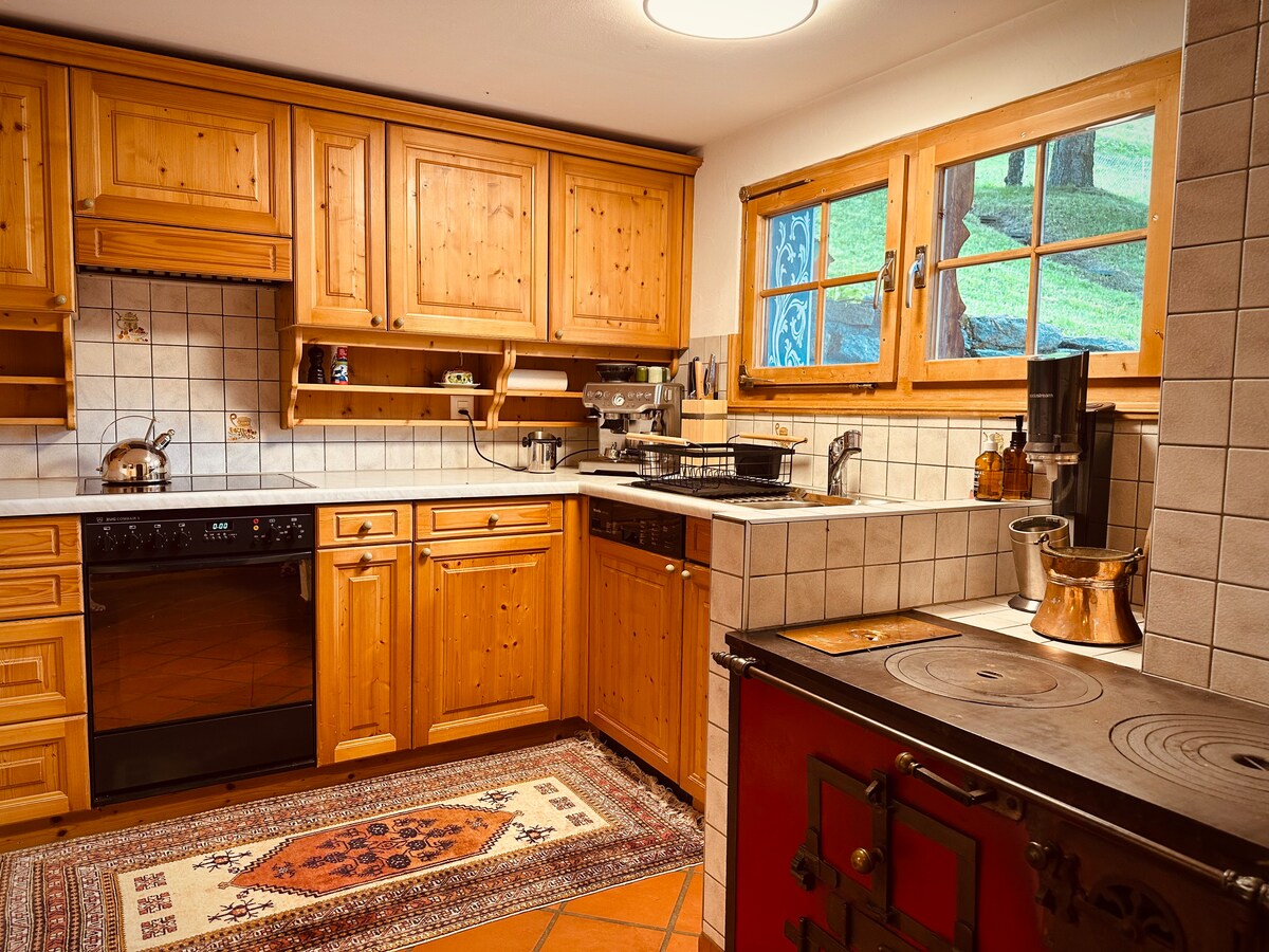 Escápate a nuestro encantador chalet histórico en Cavardiras, construido en 1862 y cuidadosamente conservado para escapadas inolvidables. Con 3 dormitorios y 2 baños en la casa principal y un baño privado adicional accesible desde el exterior, hay mucho espacio para familiares y amigos. Caliéntate alrededor del horno Speckstein en el interior o disfruta de las noches junto a la chimenea al aire libre bajo las estrellas. El gran patio abierto ofrece un espacio infinito para relajarse, jugar y disfrutar de la serenidad alpina. ¡Te damos la bienvenida a Cavardiras!