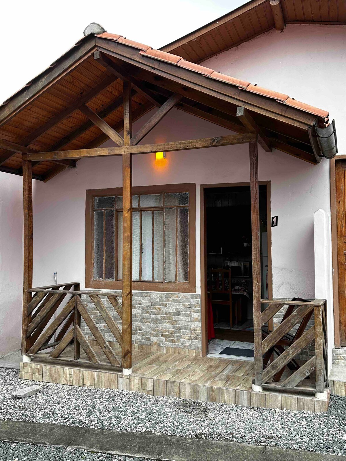 Acogedor chalet en la cordillera de Santa Catarina con 1 dormitorio y estacionamiento. Cocina equipada con cocina de gas, nevera, microondas, platos, ollas y sartenes, cubiertos, además de un cómodo sofá y calentador de aceite. Habitación con split (caliente y frío), ducha y grifos con calefacción de gas. Wifi gratuito. Capacidad para 2 parejas además de una cama auxiliar. Tiene una ubicación tranquila cerca del centro y cerca de supermercados, farmacias, farmacias, panaderías y restaurantes.