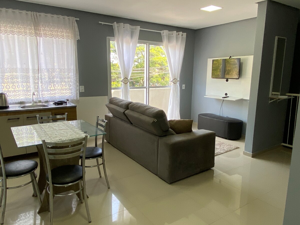 Apartamento novo, central em Uruguaiana muito aconchegante, com 1 dormitório, cama de casal, roupas de cama, ar condicionado. Sacada grande vista para frente, cozinha equipada com utensílios, microondas, chaleira elétrica, cafeteira, torradeira, louças. Próximo mercado, farmácia, 1 quadra do Parcão, 3 do terminal de ônibus.