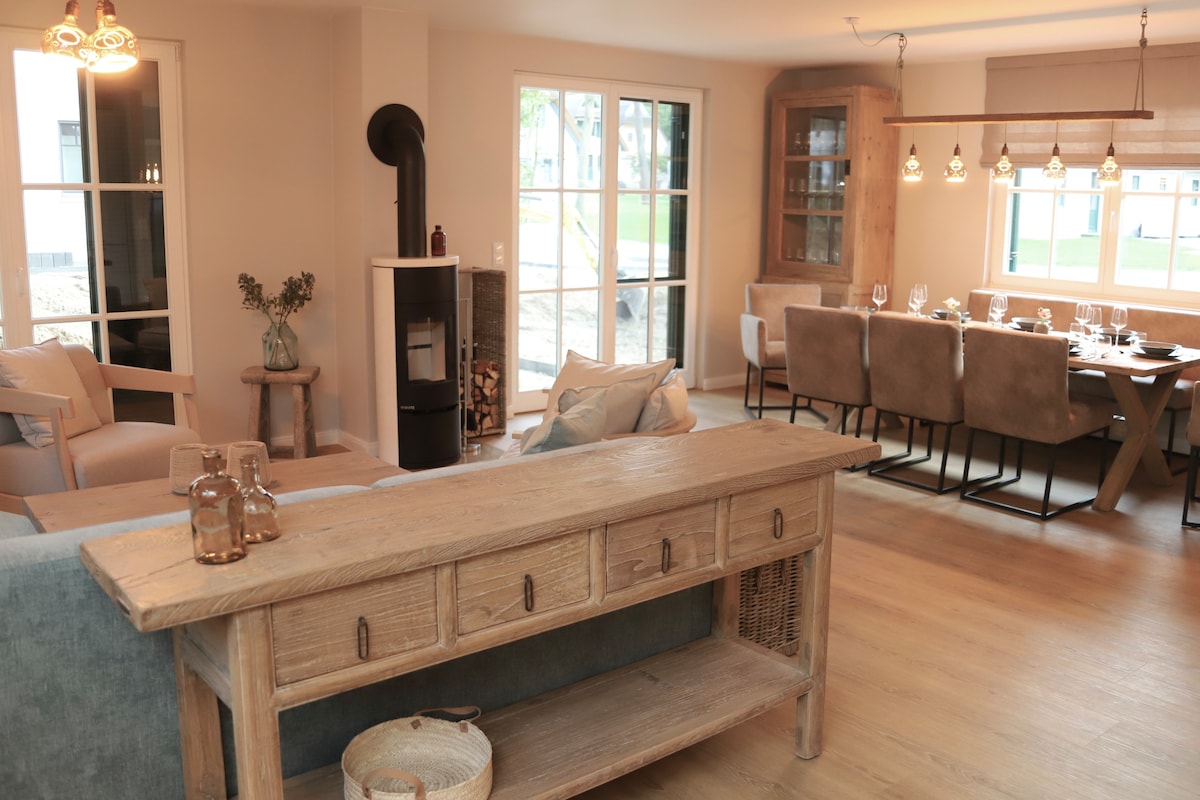 A partir del 1 de agosto de 2023, nuestra lujosa casa con techo de paja en la isla de Usedom te invita a alojarte. Tiene capacidad para un total de 8 personas y es perfecta para unas vacaciones con familiares y amigos. Disfruta de los días de verano en la gran terraza del jardín y emprende una aventura para explorar la isla. La hermosa chimenea y la sauna proporcionan un acogedor refugio invernal. Para los adictos al trabajo, hemos creado una oficina totalmente equipada.