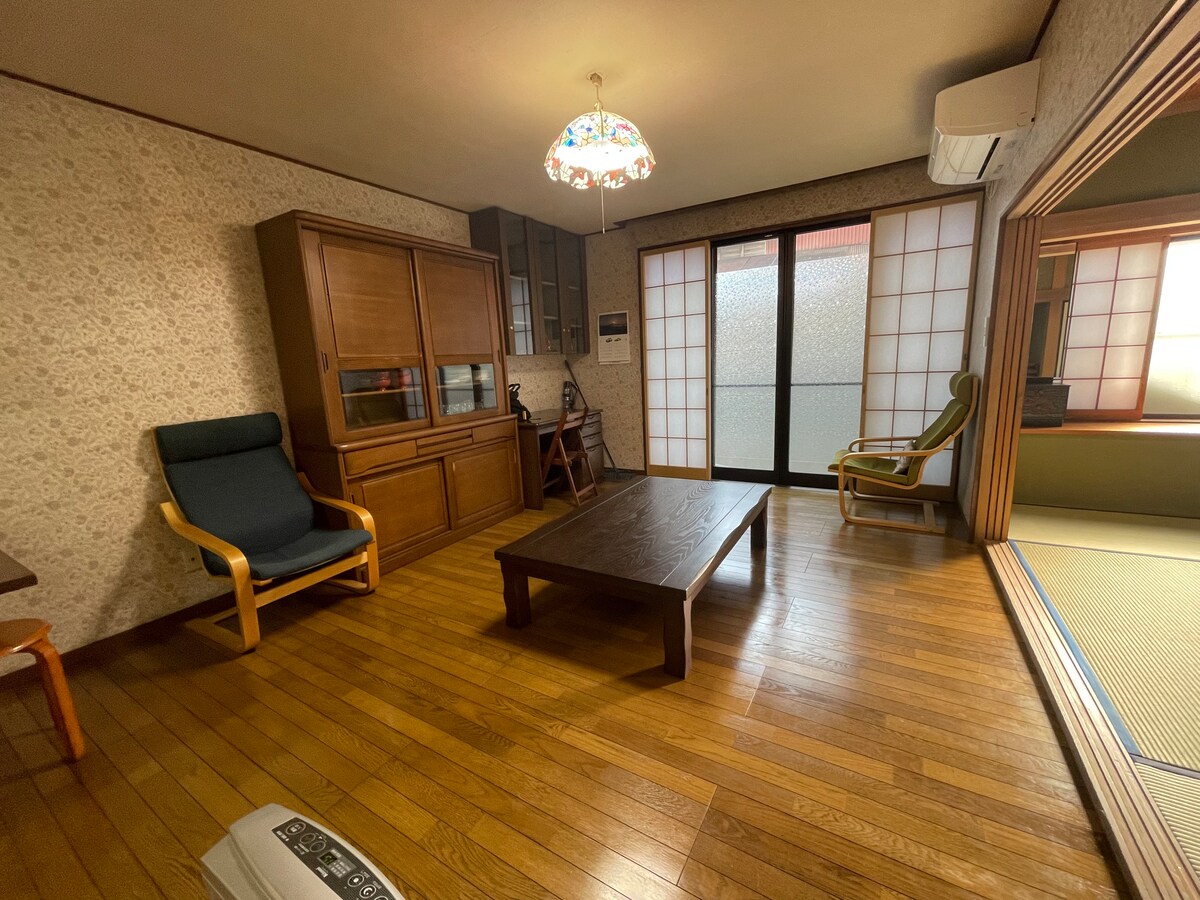 Es el primer piso independiente de una casa en el campo.Hay una sala de estar y dos dormitorios, un baño completo y una cocina completa.También puedes usar el pequeño patio trasero al mismo tiempo. Alquilamos a un grupo de 2 a 6 personas. Nos estamos preparando ahora para que puedas disfrutar de varias culturas tradicionales japonesas (tarifas separadas) en otro lugar adyacente.