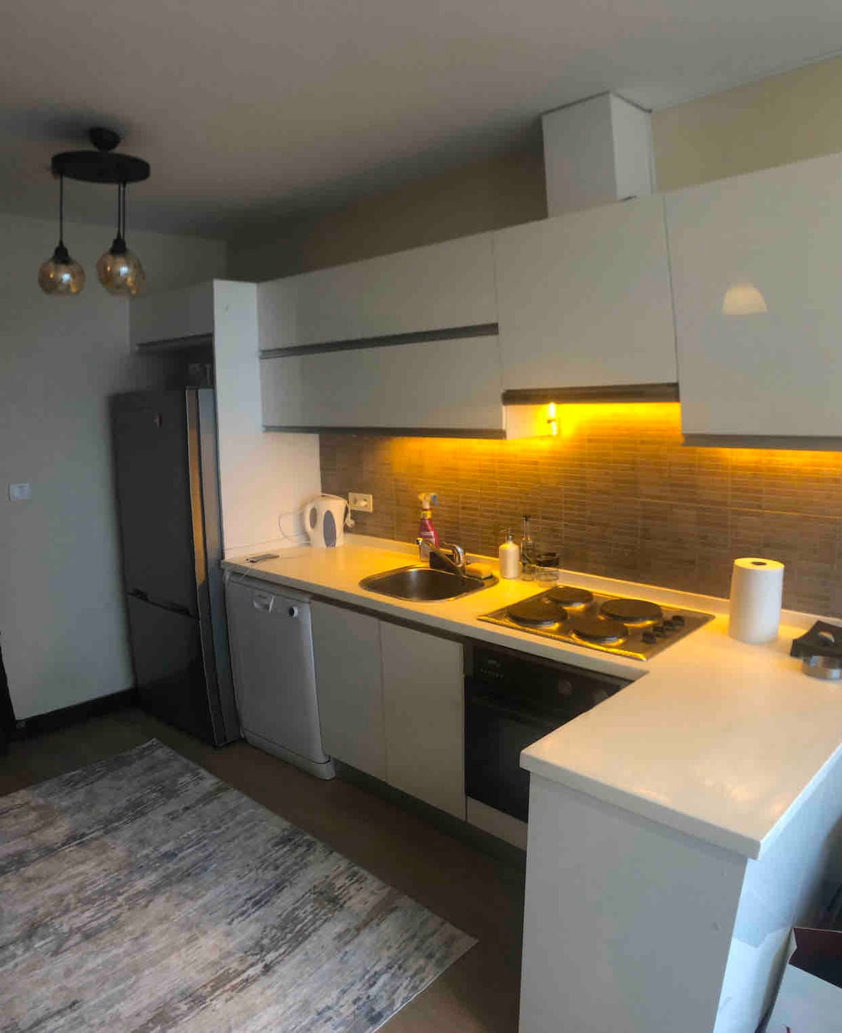 Todos los muebles y dispositivos se compran en enero de 2024. Es un apartamento decorado muy nuevo y elegante. Lavadoras, plancha , mesa de plancha, cafetera con filtro, cafetera turca y tostadora disponibles. La limpieza es nuestro punto de enfoque y toda la casa está brillando. La posición es muy céntrica. La estación de metro está a 150 metros de distancia. La estación principal de autobuses está a 120 metros de distancia. La estación de metro está a 100 metros de distancia. muy cerca del CENTRO COMERCIAL AKASYA. En los alrededores hay muchas cafeterías y restaurantes.
