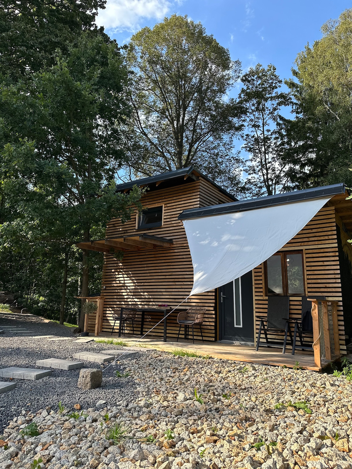 Te damos la bienvenida a nuestro acogedor iglú de madera. Relájate en la increíble sauna y disfruta del patio con barbacoa. Hay otros iglús cerca, a 120 m de distancia. Todos los iglús tienen aire acondicionado. Se encuentran en las pintorescas montañas centrales bohemias, cerca de la puerta de Pravcicka, Print Rocks y otras bellezas. Empápate del silencio de la naturaleza, encuentra paz y tranquilidad. Mira las ovejas pastando en la zona . Tu estancia nos ayuda a recuperar la vida de las románticas ruinas de la Casa Oculta.