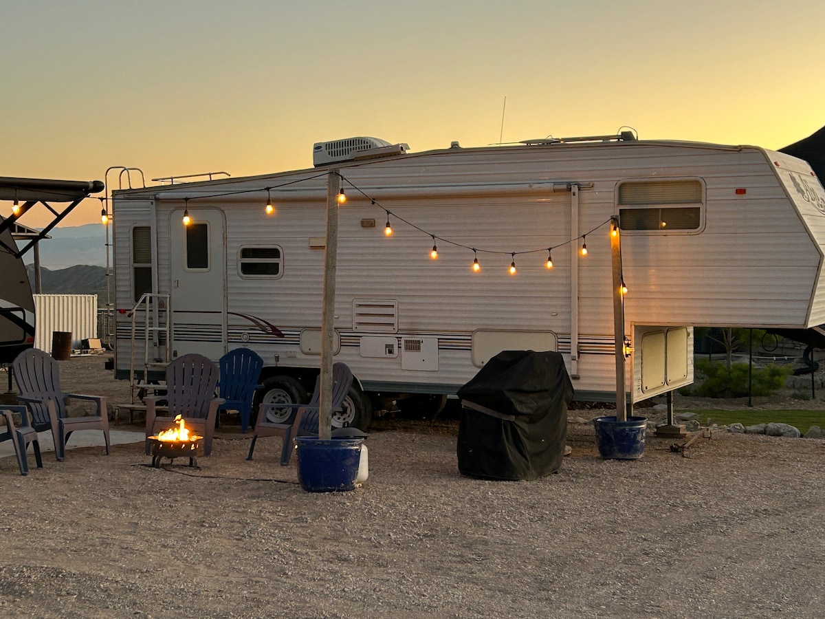 Casa rodante Lakeside Airstream: playa de arena, fogata, sombra en la playa