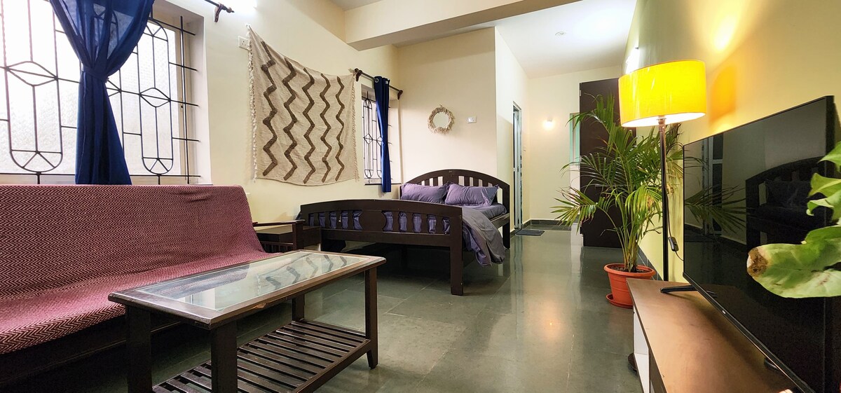 Te doy la bienvenida a Prakriti, que significa “espacio” en sánscrito, el quinto elemento de la naturaleza que representa la apertura, la posibilidad y el potencial puro. Esta casa privada de 2BHK está ubicada en un exuberante jardín de cocoteros que se mecen con el viento, con vista al tranquilo río Talpona. Adentrate en un pedacito de la Goa de los años 70, donde la sencillez se une al encanto espiritual. Con la brisa del río y el canto de los pájaros, Prakriti ofrece un refugio tranquilo que te invita a bajar el ritmo, respirar hondo y reconectarte con la naturaleza y con vos mismo.