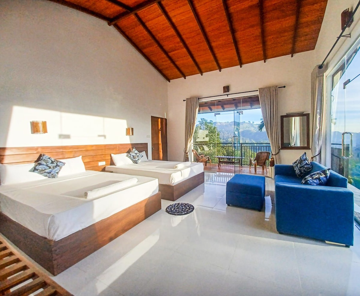 Bienvenido a la villa panorámica de Ella. ¡Una habitación hermosa y espaciosa te espera! La habitación familiar ofrece 2 camas extragrandes, puertas de vidrio templado, aire acondicionado, nevera, hervidor eléctrico y menaje para preparar té y café, una entrada privada, una terraza de madera con vistas panorámicas a la montaña, así como un baño privado con ducha. Y también a 10 minutos a pie del puente de nueve arcos. Ofrecemos aparcamiento gratuito y conexión wifi de alta velocidad.