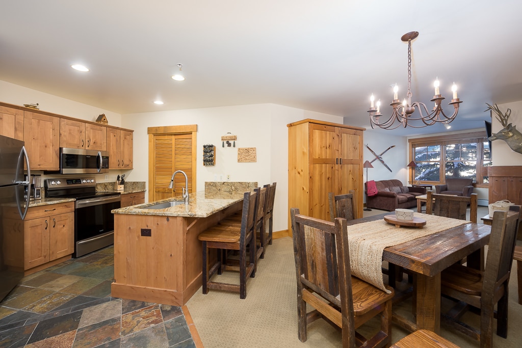 Te damos la bienvenida a la escapada a la montaña de tus sueños Este ático remodelado con acceso a pistas de esquí está a pocos pasos del telesilla Quicksilver y Main Street. Capacidad para 10 personas con 3 camas, 2 baños, 2 balcones, vistas a la montaña, abundante noche natural (y cortinas opacas en cada habitación). Disfruta de una cocina completa, chimenea de leña, wifi rápido, televisores 4K y ventajas del centro vacacional: piscina climatizada, jacuzzi, sala de vapor, sauna, gimnasio, sala de juegos, recepción/conserje, valet de esquí y más. El estacionamiento del garaje está disponible por un cargo adicional.