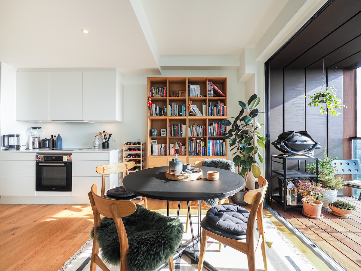 Este elegante penthouse de dos pisos tiene capacidad para 4 huéspedes. El dormitorio del cuarto piso cuenta con ventanales del piso al techo y mucho espacio de guardado, mientras que la cocina abierta y la sala de estar incluyen electrodomésticos Miele de primera calidad, una isla grande y un sofá cama. Lo más destacado es una terraza privada de 100 m² en la azotea con una vista de 270 grados a la ciudad, un sofá al aire libre, un comedor, una ducha, un jacuzzi y un sauna privado, que ofrecen lo último en relajación urbana.