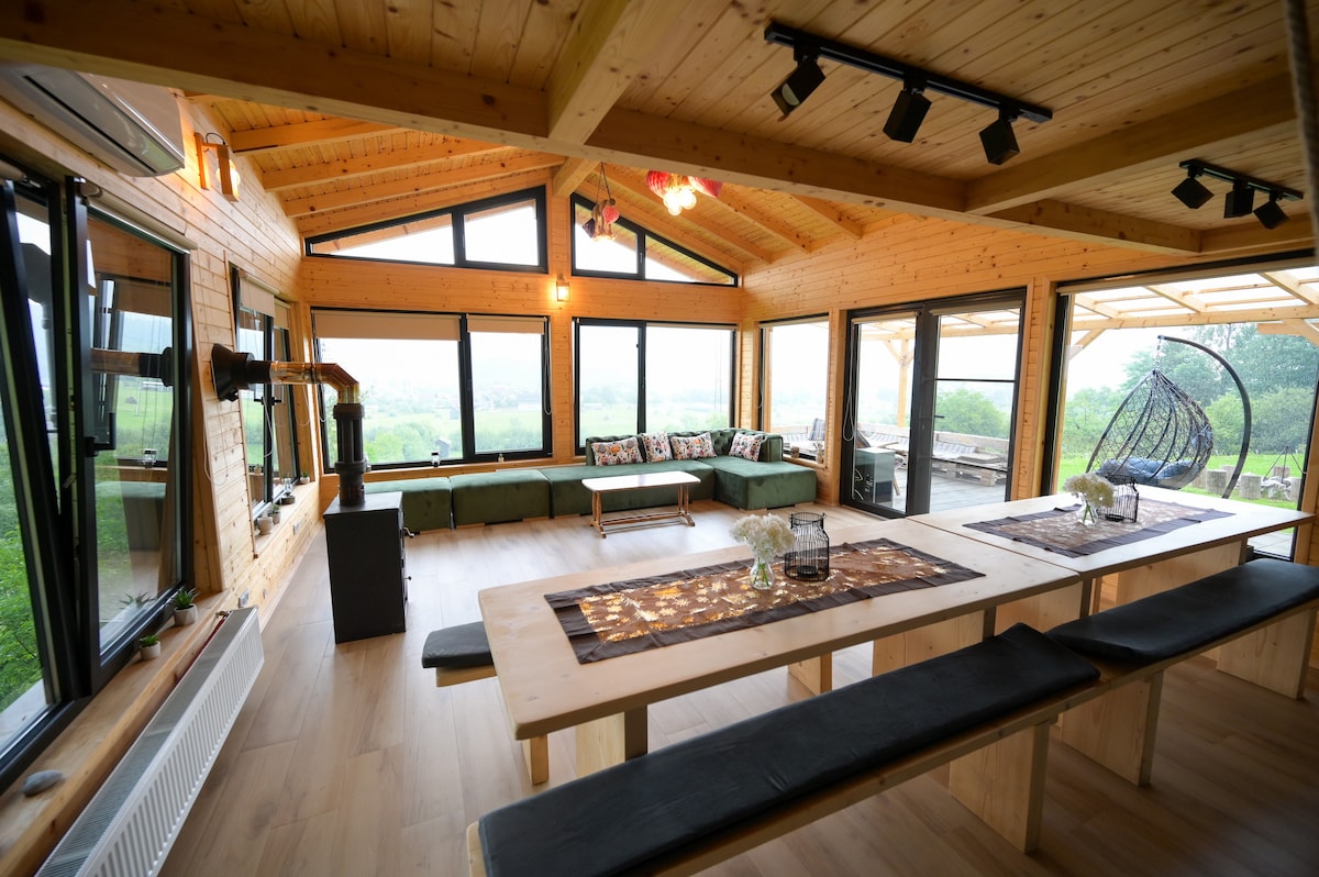 A Frame Cabin - Valea Vinului is located in the Maramureș Mountains Natural Park (the second largest area in Romania), on the Wine Valley, part of the city of Viseu de Sus, the street being recognized for the richness of mineral springs. The cottage is located in a place with an unforgettable panorama, overlooking the spectacular hills and the Rodna Mountains. The cottage is located away from the main road, enjoying peace and privacy.