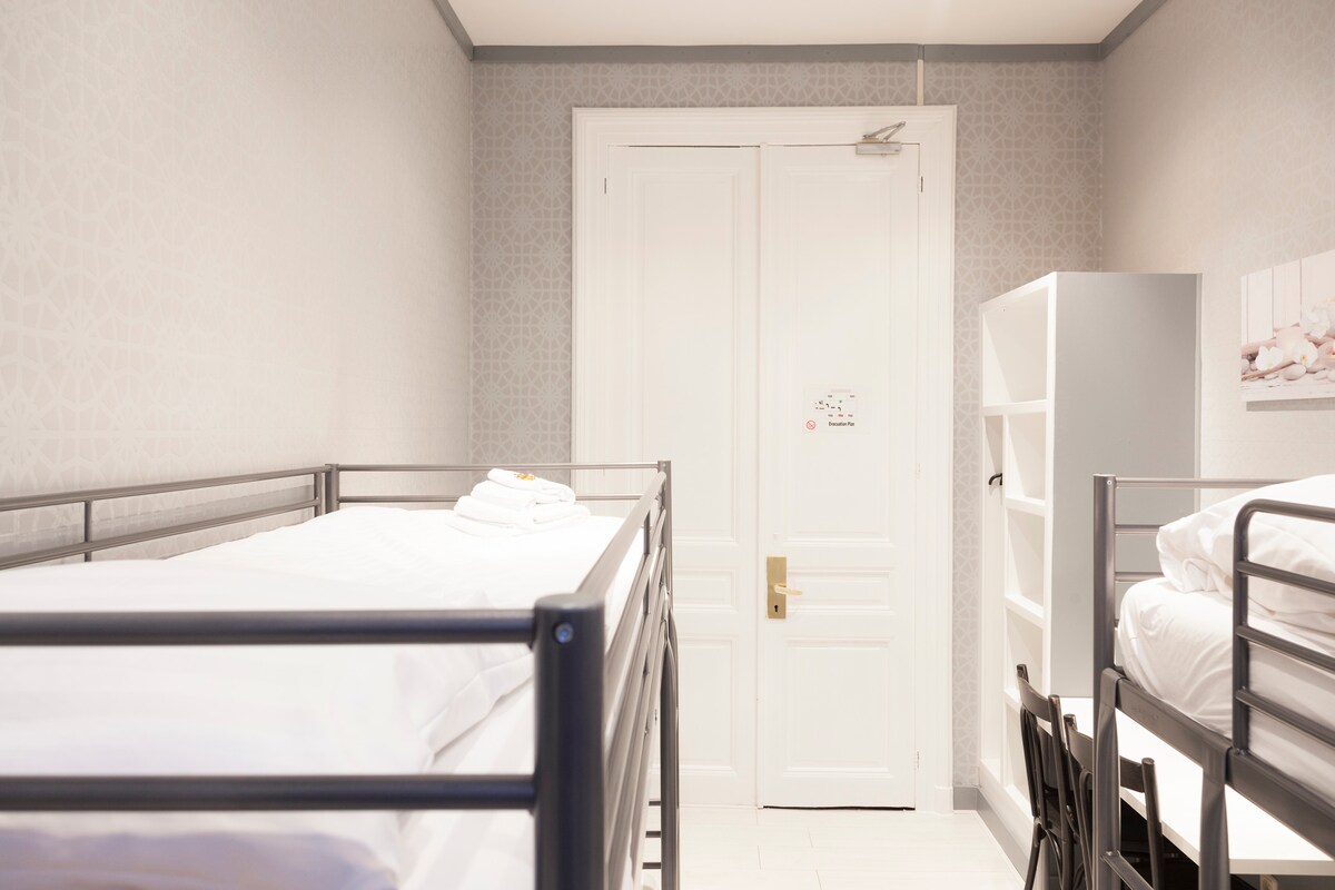 Habitación para 4 personas, 2 literas, baño. Hotel Dupuis.