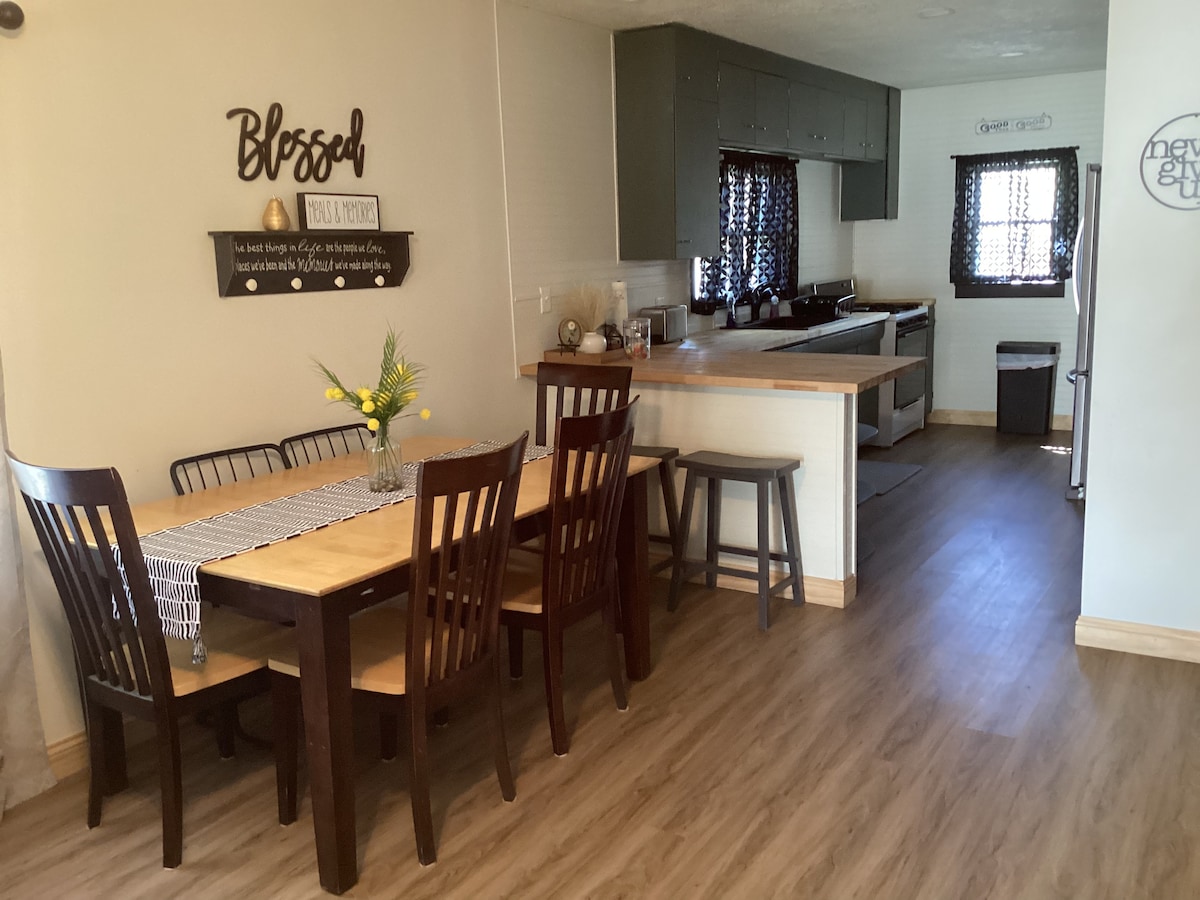 La Casa Smith, que una vez fue el hogar de una preciada familia de 12, es rica en historia y corazón. Trae a toda la familia a un lugar con un montón de espacio para divertirse y reír. A poca distancia a pie del parque de la ciudad, los diamantes de bolas (.2 millas), la piscina (0,4 millas), la tienda de conveniencia (2 blk), el campo de golf (0,5 millas) y el estanque de Auble. Amplio porche para disfrutar de transeúntes y noches de pueblo pequeño en el principal. Patio grande para que los niños corran o se reúnan en las sillas de jardín. La casa renovada de 114 años da la sensación de años pasados de una manera nueva.