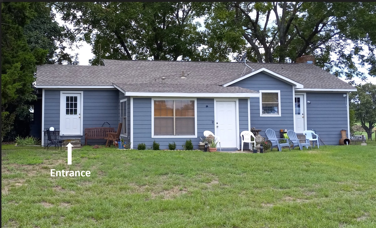 La casa está en una granja de arándanos, es pintoresca y cómoda. A solo quince millas de Canton Tx. Primeros días de comercio del lunes. A ocho millas de distancia, en Edom Tx, se encuentra Blueberry Hill Farms, donde puedes recoger arándanos y moras en junio y julio de cada verano. Edom es conocida por los artistas de nuestra ciudad que elaboran su arte en sus tiendas. A 2 millas de la casa se encuentra Ben Wheeler Tx con dos restaurantes. www.benwheelertx.com www.edomtx.com www.blueberryhillfarms.com No se admiten mascotas.