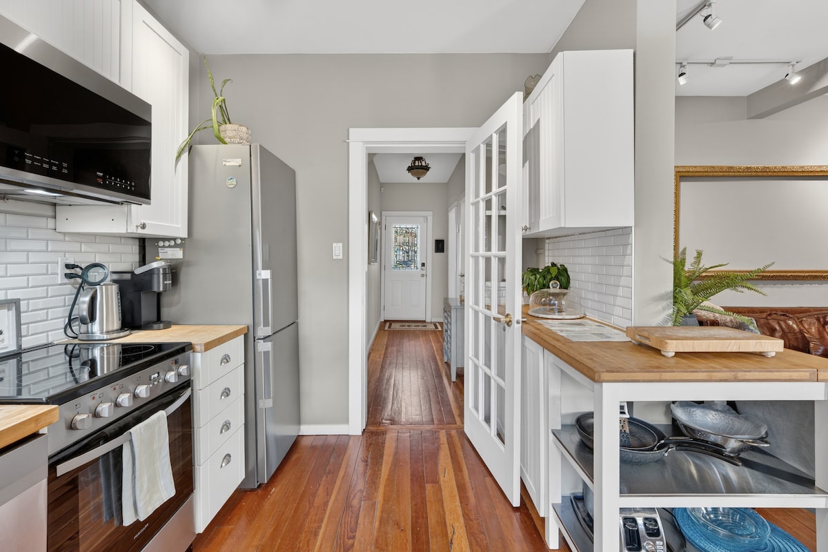 Suite privada céntrica, renovada, en la planta principal de una hermosa casa, a pocos pasos de los servicios de Main St. y con fácil acceso al centro de la ciudad. Disfruta de un dormitorio y un sofá cama, electrodomésticos de acero inoxidable en una cocina totalmente equipada y la calidez de la chimenea de gas, aire acondicionado portátil y purificador de aire. Los suelos de madera se extienden hasta dos terrazas, una cubierta por un patio trasero ajardinado. Dentro de la lavandería de la suite, este lugar promete una estancia inolvidable en medio de la vida urbana. Aparcamiento gratuito en la calle. No se admiten mascotas, no apto para niños pequeños.