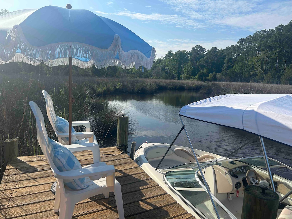 Southern coastal living at it's best! A true escape from society's demands directly on the Intracoastal waterway. Cozy & Private 1 bedroom 1 bath carriage house located on 15 acres between the Pamlico Sound and Goose Creek State Park. Enjoy the panoramic views from your private balcony. Access to the waterfront and boat dock. There is a small boat launch for your small boats, jet skis, kayaks and paddleboards next to the pier. Shared use of the screened-in gazebo. Come Relax and Enjoy it!