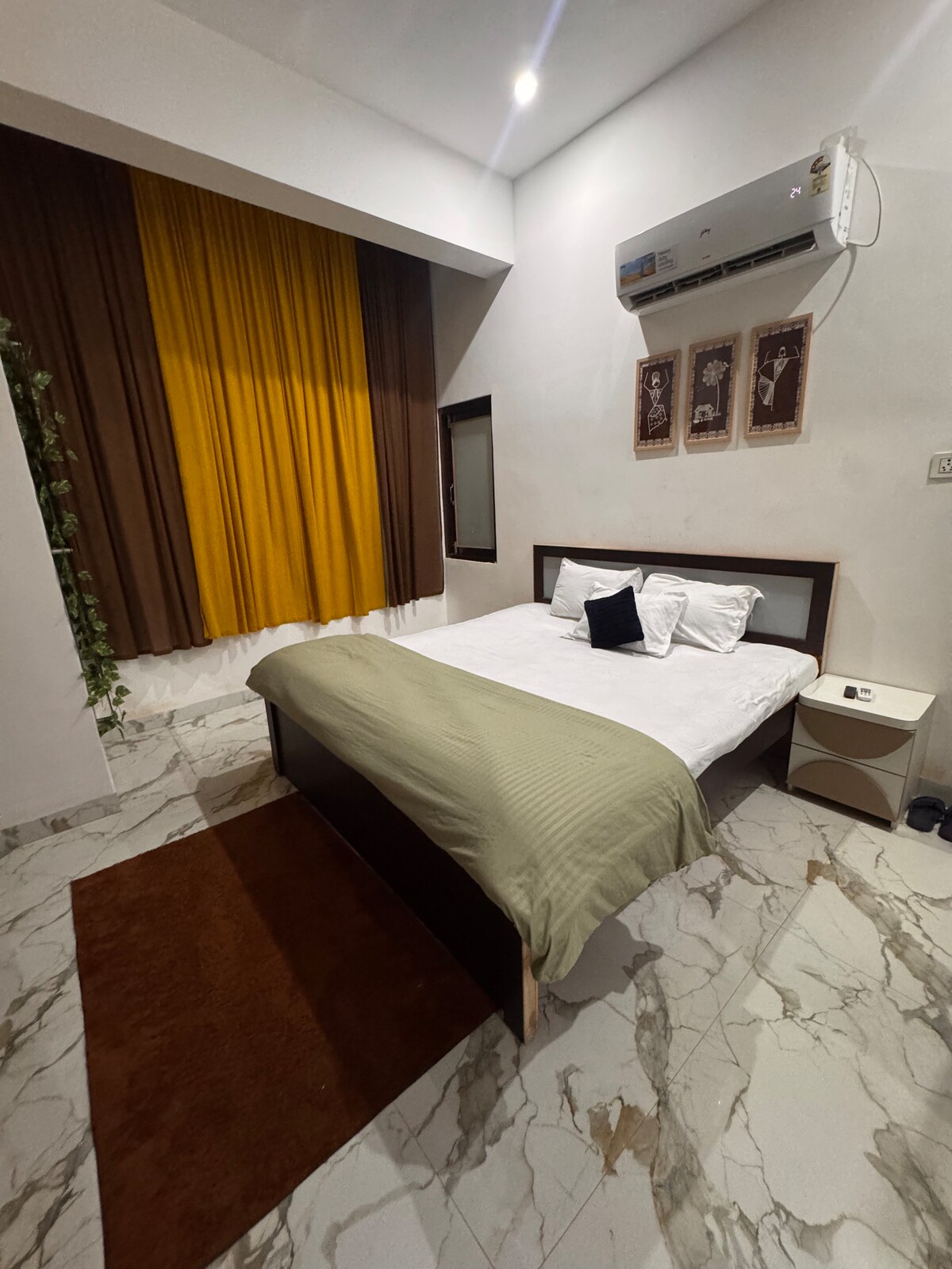 En este alojamiento se respira tranquilidad: ¡relájate con toda la familia! Una unidad de lujo con tres dormitorios, una sala de estar y una cocina con todas las cosas necesarias. Esta propiedad se encuentra en la colonia, a 100 metros de la carretera principal. El camino a la colonia es un poco accidentado, pero siempre estoy disponible para nuestros huéspedes. - Totalmente climatizado. - Cocina totalmente equipada con osmotizador inverso. -Wifi gratuito. - Televisores en cada dormitorio. - Limpio y completamente desinfectado. - Aparcamiento gratuito * Taxi, coche y E-Rickshaw disponibles de guardia.