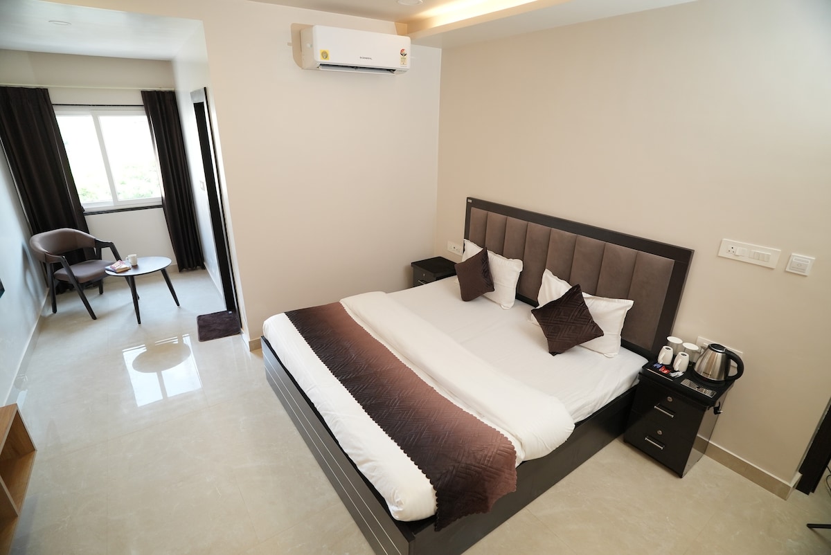 Your family will be close to everything when you stay at this centrally-located place. Bring the whole family to this great place with lots of room for fun. Your elegant retreat awaits at the Pearl of Varanasi. This brand-new, modern flat offers a perfect blend of comfort and style. Relax in an air-conditioned, two-room space with a plush king bed, smart TV, and all the amenities for a peaceful stay We can also help arrange a cook at additional cost if someone needs home cooked meals.