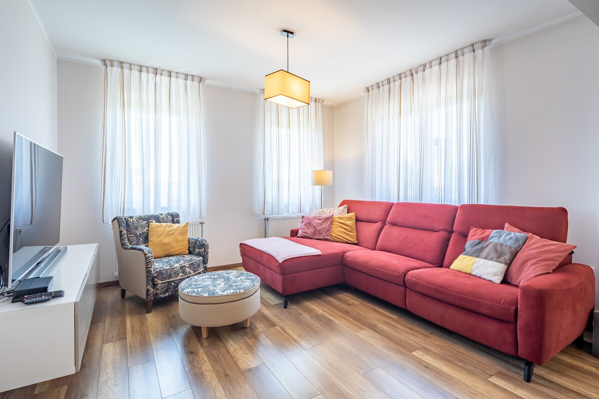 El departamento está ubicado en el centro, justo en la calle peatonal, 65m2, 2 pisos, totalmente renovado, burgués, combinando los valores modernos y el ambiente de la casa construida en 1908. Está completamente reconstruido, con calefacción por suelo radiante, aire acondicionado, un baño moderno en ambos niveles, pero con vigas que parecen de la antigüedad. La propiedad también tiene 2 habitaciones, living, cocina totalmente equipada, comedor, baño separado. Máximo para 6 personas ¡No se admiten mascotas!