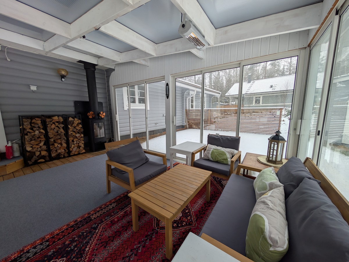 Perfekt för er som vill ha ett komplett boende utan att behöva tänka, i en rofylld miljö. Kanske komma iväg och koppla av och njuta i en mysig vedeldad bastu eller bada jacuzzi under stjärnorna på privat altan. Modern gäststuga på ca 70m² indelad i vardagsrum, kök, badrum, vedeldad bastu samt ett stort sovloft med två dubbelsängar och två enkelsängar. Gästers tillgång: Ved Ansiktsmask Kaffe & te Wifi Parkeringsplats Tv Två cyklar på sommaren Observera att slutstädning ingår i slutpriset.