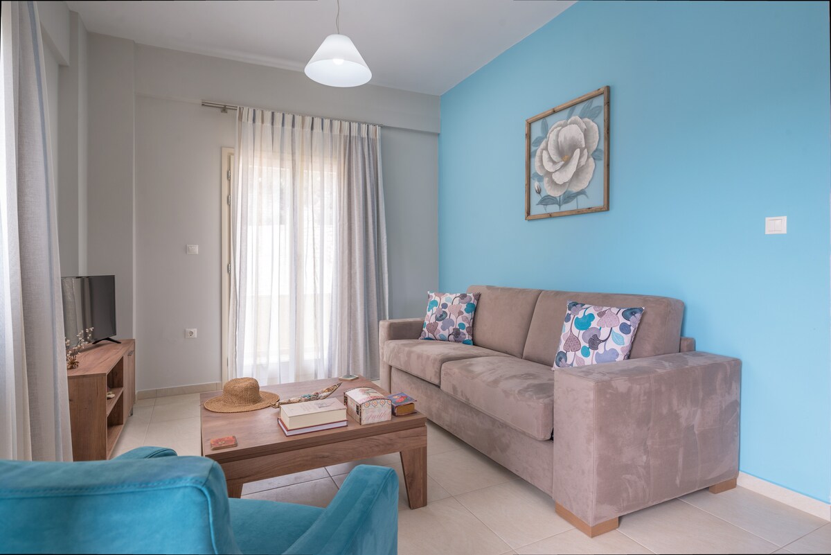 El apartamento Anticlea pertenece al complejo de apartamentos Oralia. El departamento tiene una decoración moderna en un ambiente íntimo y hospitalario, con una vista única de Vathy y del jardín en los departamentos. Es el lugar ideal para aquellos que buscan vacaciones tranquilas y relajantes. El apartamento Anticlea es capaz de alojar hasta 4 personas. Ofrece una cocina totalmente equipada, TV en la sala de estar y en el dormitorio, aire acondicionado, WIFI, baño privado y lavadora.