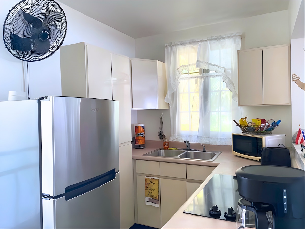 Apt#3- Experience Vega Baja in this 2BR/1BA top level home just steps from Puerto Nuevo (Mar Bella), Puerto Rico’s only Blue Flag beach! Enjoy AC in each room, gated parking, WiFi, full kitchen, living room w/ TV, and heated water. Includes outdoor shower, large balcony, hammock, beach chairs, cooler, and more! Ocean breeze flows naturally throughout the home. Explore Ojo de Agua, local foods, and nearby shops. Central location to discover the island, ideal for couples, friends, or families!